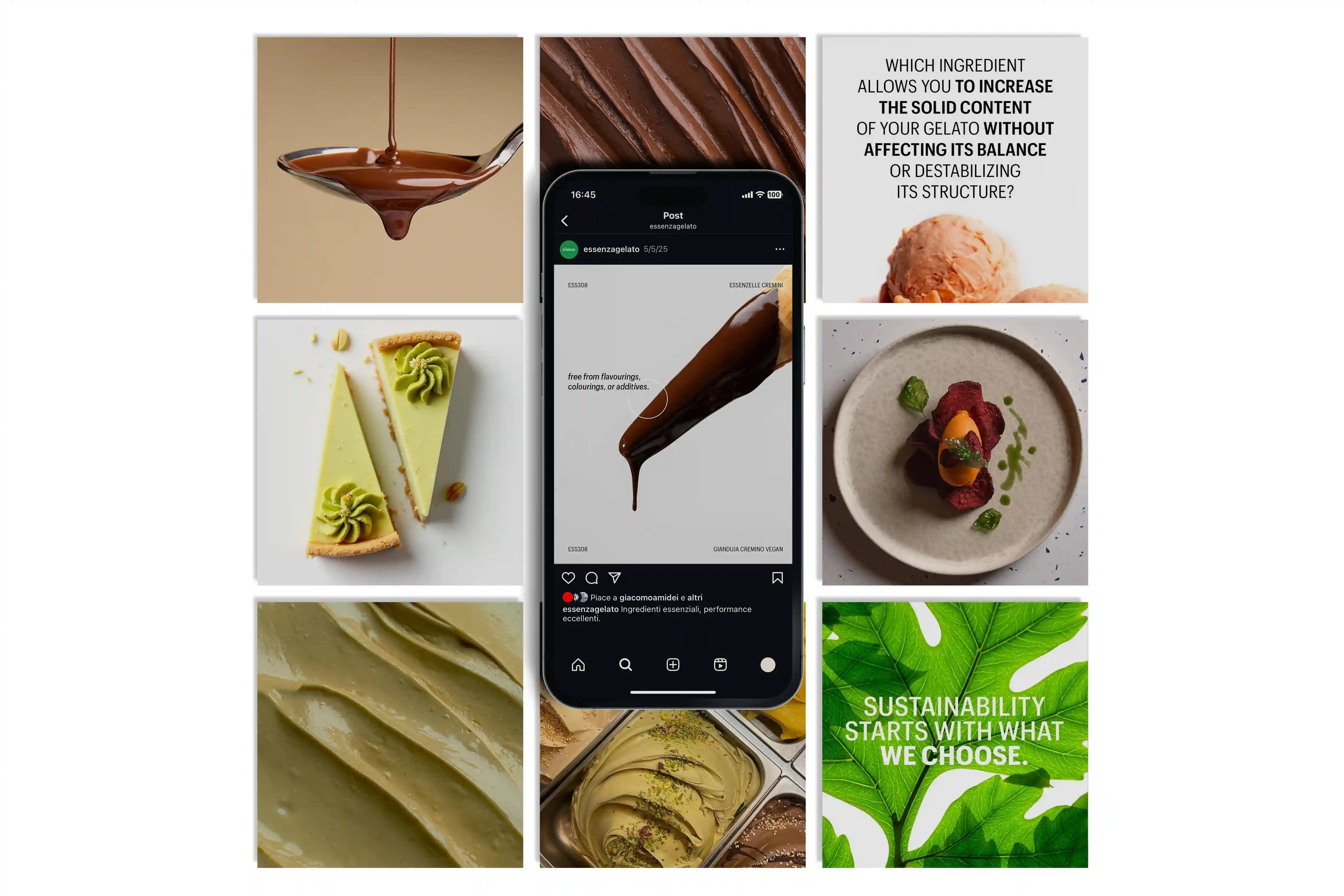 Essenza is a B2B brand within the Toschi Vignola group, creating clean-label ingredients for gelato and pastry professionals worldwide. We started by refining its positioning and visual language - shaping a new creative direction rooted in clarity, rigor, and international appeal. From brand analysis to art direction, we helped streamline the identity across key digital assets. Today, we lead the brand’s social media strategy, developing technical and editorial content designed to engage a global network of chefs, pastry chefs, and gelato artisans.